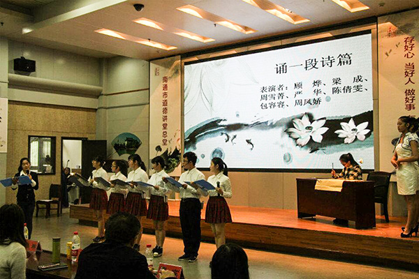 道德讲堂和南通市道德总堂年终这一“压轴活动”,学院团委、学生会为此做了一个多月的精心准备,最终为师生呈现了一场主题鲜明,极富感染力的道德讲堂活动,得到参会师生的一致好评。