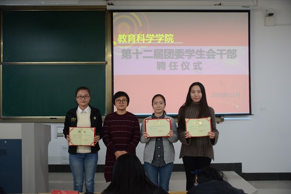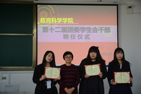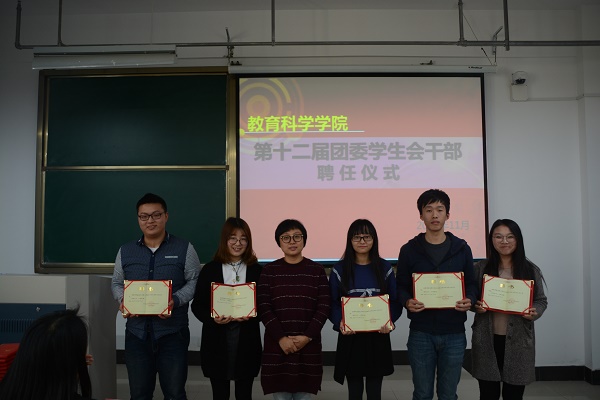 会议由新一届教科院学生会主席徐航同学担任主持,由魏琳老师宣读聘任决定,并向全体团员干部颁发聘书、合影留念。