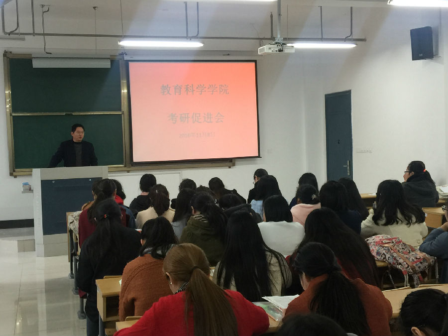 2016年11月8日下午14:00,成人电影 在18号教学楼417召开了考研促进会。党总支副书记兼副院长徐红波、副院长沈永江、学工办主任陈淑慧以及报名参加2017年研究生入学考试的116名学生参加了此次会议。