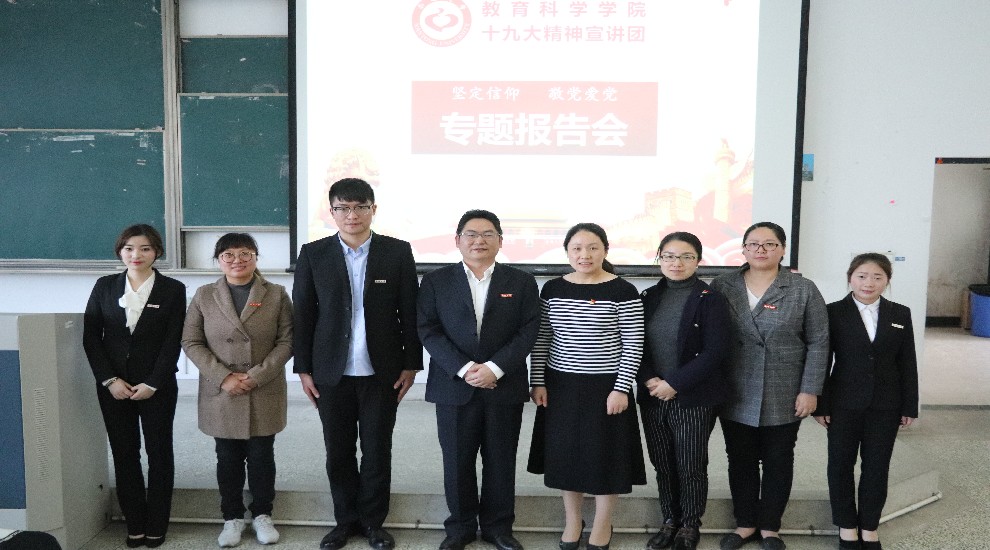 4月25日,成人电影 十九大精神宣讲团举行第二场宣讲会—“坚定信仰,敬党爱党”专题报告会。宣讲团团长,学院党总支副书记副院长徐红波;宣讲团成员,学院学工办主任陈淑慧、学院团委书记魏琳、研究生张克晨、本科生陈幸佳5位同志围绕培育和践行社会主义核心价值观进行了宣讲。校研究生工作部副部长张毅、校学生工作部就业指导中心姚蓓代表学校到现场指导观摩,学院全体定向师范生200余人参加活动。