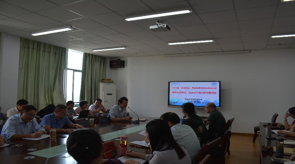 根据《省委教育工委、省教育厅关于在全省教育系统精准开展警示教育的通知》和学校《关于在全校开展2018年“清风校园”专题教育月活动的通知》等文件精神,学院于9月28日举办“清风校园”专题活动暨党支部书记、党员骨干培训班专题讲座。活动由学院党总支书记陈炜主持,学院全体教师党员参加了本次活动并聆听了专题讲座。