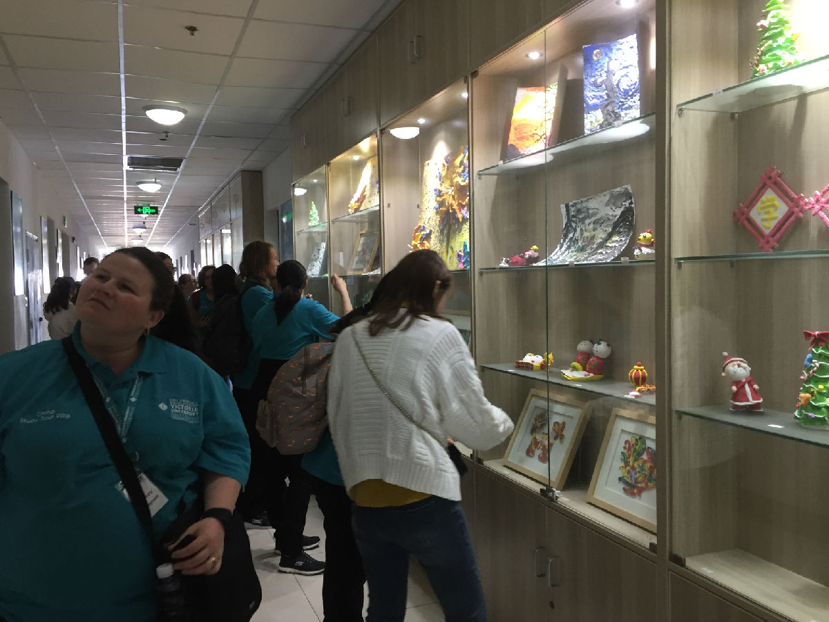 学前教育系副主任钱慧陪同下参观了学前教育专业实训室,客人们对学生们完成的手工作品赞叹不已;在钢琴教室,学前教育系潘莎莎老师一曲委婉动听的《月亮代表我的心》更是将此次中外交流推向了高潮。