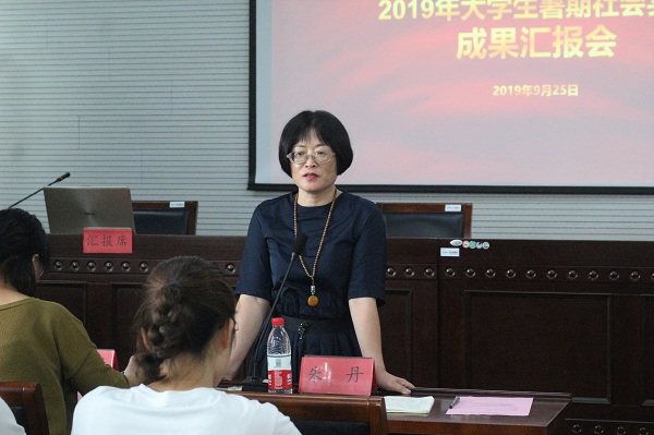学院党委书记朱丹认真听取了此次成果汇报会,她首先祝贺成人电影 2019年暑期社会实践圆满完成了既定的任务,从开始和结束,做到了一个完整的闭环。优秀团队和个人的经验分享对自身而言是有益的收获,对与会者今后开展社会实践更是一种指引和推进。最后,她对今后的社会实践活动提出了三点期待和要求,一是社会实践要更加注重前期的设计和规划,尤其是团队的实践要做到活动有预案,确保后期实践的顺利开展。二是希望今后即将开展社会实践的同学多多利用好各类实践的资源,多思考,多体验、多请教,通过实践提升自身的综合能力。三是强调社会实践的规范性,无论是语言的表达还是团队的工作,都要有完整性、规范性。