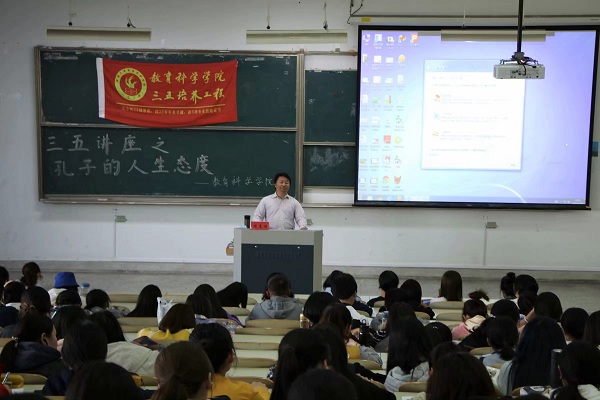 10月30日,成人电影 于9号楼201教室举办了一场以“孔子的人生态度”为主题的三五讲座。此次讲座由陈春保老师主讲,教科院210余名同学到场聆听。