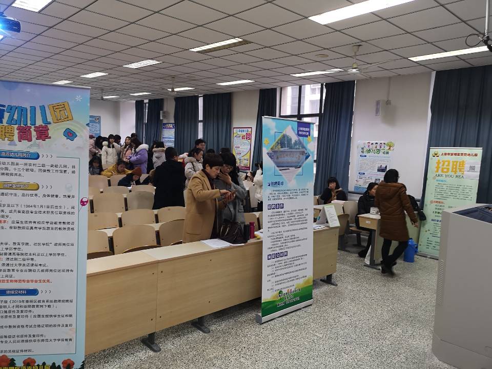 2019届毕业生专场招聘会在主校区8号、9号教学楼多个教室举办,吸引了上海市崇明教育局、太仓教育局带领辖区学校组团前来招聘,其中上海市崇明教育局带领崇明区域24家学校负责人参加招聘会进行现场面试。另有南通诺德安达双语学校、吉的堡幼儿园等12家单位前来现场招聘,为成人电影