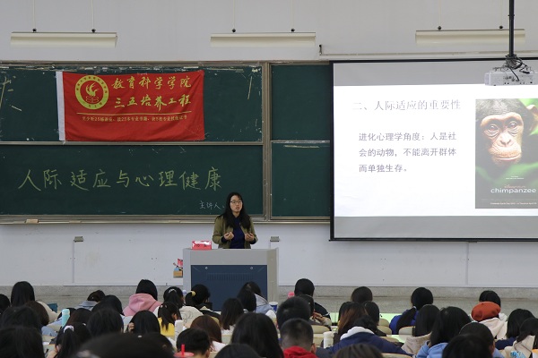 11月11日13:30,成人电影 于九号楼302教室举办以“人际适应与心理健康”为主题的三五讲座,此次讲座由冯霞老师主讲,教科院280余名学生聆听了本场讲座。