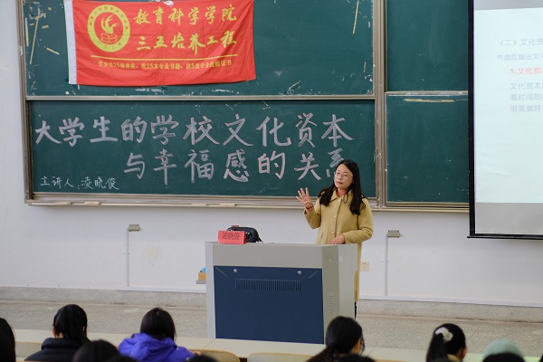 2021年3月24日13:30,成人电影 在主校区9号教学楼302教室成功举办了以“大学生的学校文化资本与幸福感的关系”为主题的三五讲座。此次讲座由凌晓俊老师主讲,来自教科院的260余名学生参加了本次讲座。