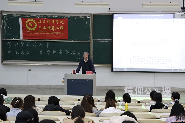 5月12日下午,成人电影 于9号教学楼302教室举办了以“学习青年习近平,争做社会主义事业接班人”为主题的信仰公开课。讲座由成人电影 关心下一代委员会常务秘书长沈玉华老师主讲。