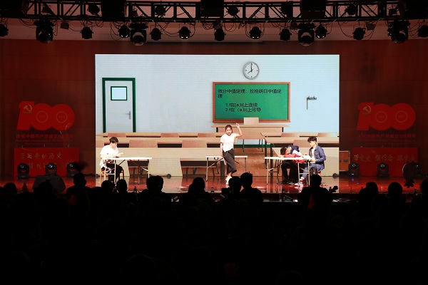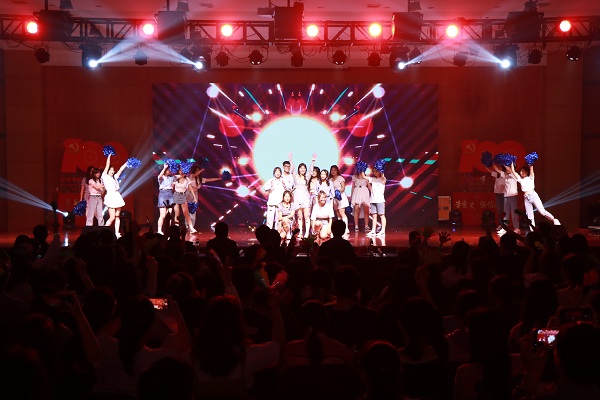 晚会在师生红歌合唱《祖国不会忘记》中拉开帷幕。由成人电影 全体领导成员以及师生代表组成的合唱团用歌声向党的生日献上最真挚的祝福,用歌声赞扬了在祖国大地默默耕耘、无私奉献的人们。开场舞《一起跳舞吧》充分彰显了教科学子的蓬勃朝气。晚会分为三个篇章次第进行。第一篇章“青春拂晓,梦想起航”在红歌串烧中徐徐展开,百年征程书写光辉党史,筚路蓝缕绘就中华盛世。一首首经典红歌的背后是对老一辈同志峥嵘岁月的追忆,亦是对新时代少年风发意气的展望。现代舞《花枪》将国风元素融入新时代的鼓点,用舞姿演绎出巾帼不让须眉的气概。百年亦是风华正茂,诗朗诵《少年中国说》以饱满激昂的热情,铿锵有力的语调传递出少年复兴中华的坚定理想信念。