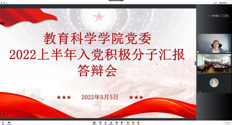 葛佳琪等30名入党积极分子向答辩组老师汇报自己在大学期间的基本情况,在集体中如何发挥先锋模范作用,特别是在疫情期间的表现。