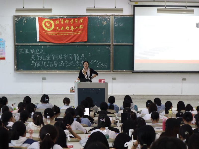 随着社会经济的发展,生活水平的提高,国家对教育的改革不断深化,大众对儿童音乐教育的重视日益增加,但仍存诸多问题。就此,10月18日,成人电影 学前教育系潘莎莎老师开展了以“关于儿童钢琴学习特点与优化指导路径的思考”为主题的讲座。讲座在9号楼202教室举行,成人电影 260多位学生参加。