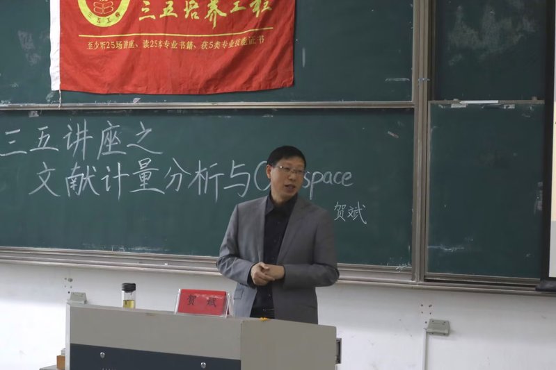 11月10日下午,成人电影 于9号楼201教室举办以“文献计量分析与Citespace”为主题的三五讲座。讲座由贺斌老师主讲,成人电影 200余名同学参加了讲座。