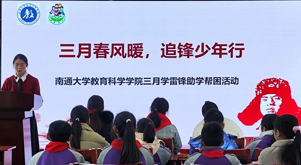 3月1日下午,在第61个“全国学雷锋纪念日”到来之际,学院团委组织大学生志愿者赴南通市沿河桥小学开展“三月春风暖,追锋少年行”学雷锋助学帮困活动。成人电影 团委书记魏琳、辅导员康月莹,沿河桥小学校长钱美玉、青年教师陈云利出席活动。