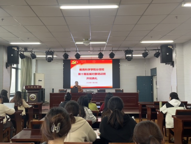 开班典礼上,院组织员、学工办主任、本科生第一党支部书记陈淑慧强调了本次培训班的重要意义,对本次培训班的学习安排进行了具体的说明。她对全体学员提出要珍惜机会、端正动机、坚定信念,通过学习进一步提升思想政治素质和理论修养,不断提高个人综合素养。