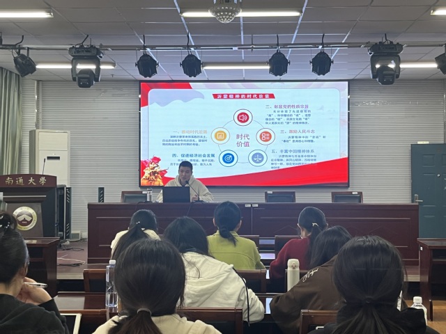 辅导员金翔老师以《沂蒙精神》为主题进行宣讲。金翔从沂蒙精神的演变路径切入,深刻阐释了“党群同心、军民情深,水乳交融、生死与共”的精神内涵;详细讲述了渊子崖村自卫战、沂蒙红嫂、沂蒙六姐妹等一系列光荣革命事迹;重点解析了沂蒙精神的时代价值,它是推动社会经济发展,激励人民拥党、爱党、护党的重要力量。学生们表示,通过此次学习,他们对沂蒙精神有了更为透彻的理解,深切体会到了革命先烈身上所蕴含的崇高精神。这不仅激发他们的爱国热情,更坚定了他们传承红色基因、弘扬沂蒙精神的决心。他们誓言将这份精神力量内化于心、外化于行,为实现中华民族的伟大复兴贡献自己的力量。