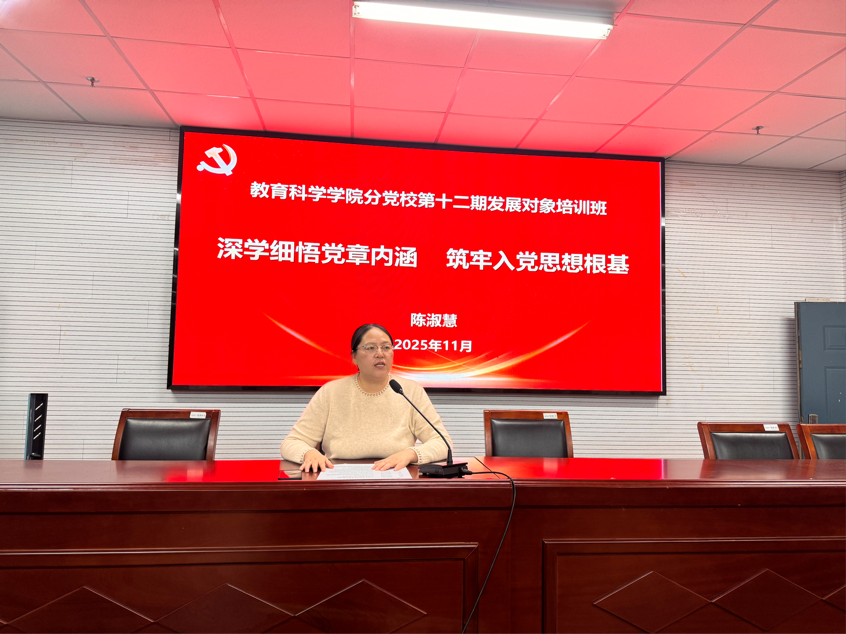 学院学工办主任、本科生第一党支部书记陈淑慧作《深学细悟党章内涵,筑牢入党思想根基》专题报告,围绕党章展开系统讲解。她先明确党章根本大法属性,梳理其18次修订脉络以凸显党与时俱进的特质;再解读党章中党的性质宗旨、党员权责、民主集中制与纪律要求等核心要义,结合身边党员榜样实例佐证;她还号召学员在理论学习中固信仰、实践锻炼中强本领、自我革新中守本色,鼓励大家将党章作为终身必修课,以实际行动争当合格党员,为民族复兴献青春力量。