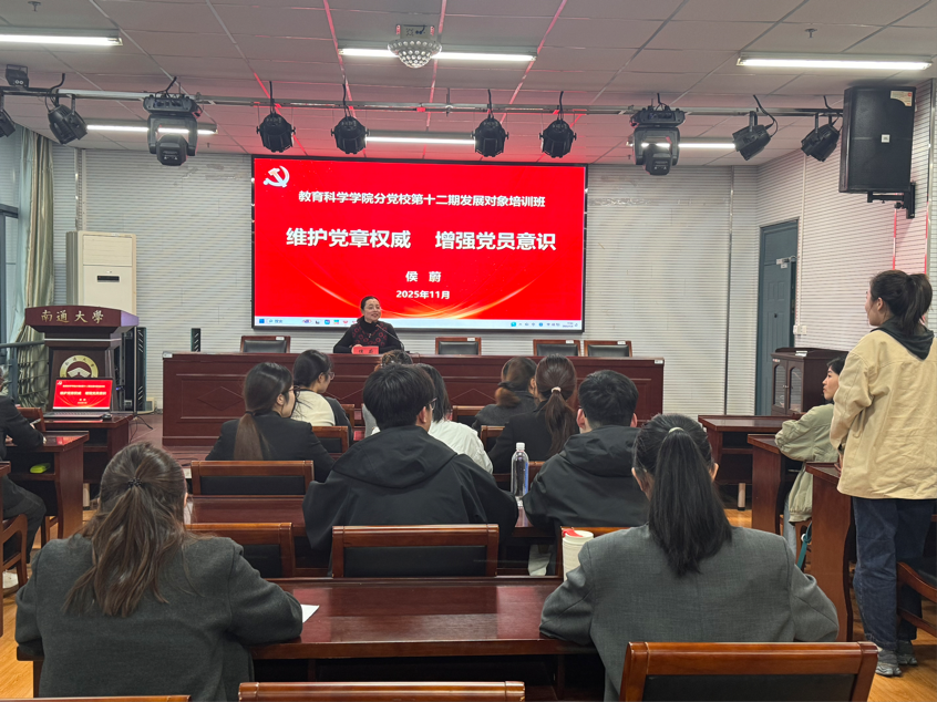 学院党委副书记、副院长侯蔚作《维护党章权威,增强党员意识》专题讲座。她强调,明确坚定的入党目标是党员前行的根本指引,唯有将个人发展融入党和人民的事业,才能在时代征程中实现真正的价值。讲座中,她鼓励学员们以党章为遵循,把入党初心转化为行动自觉,在服务大局中锚定方向,让个人成长与国家发展同频共振。