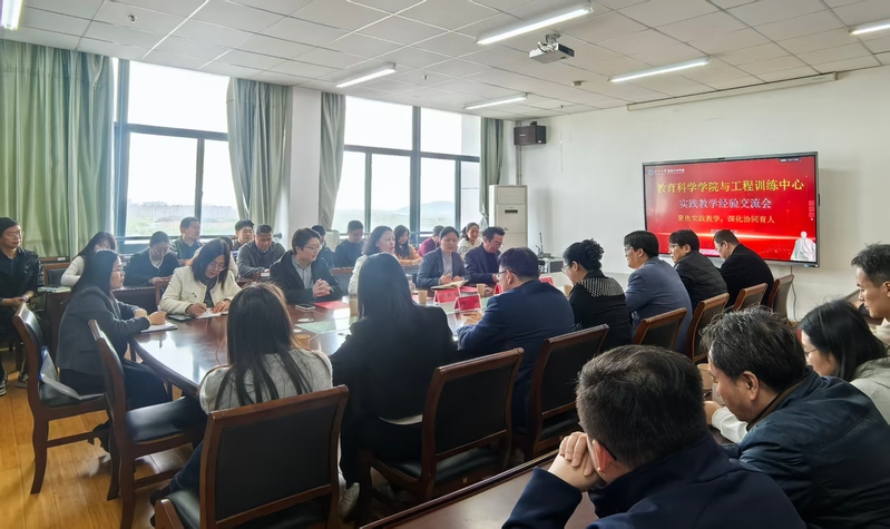 实地观摩,开启交流序幕。与会人员共同参观了成人电影 实验室,现场观摩贺斌、陈燕两位老师的实验教学展示。参观过程中,工程训练中心教师对教育科学学院实验室的规范化管理、现代化设备配置以及实践教学与专业培养紧密结合的做法给予肯定。贺斌老师和陈燕老师分别结合课程实际,展示了实验教学的组织流程与学生互动场景,充分体现了实践教学在师范生培养中的基础性作用。