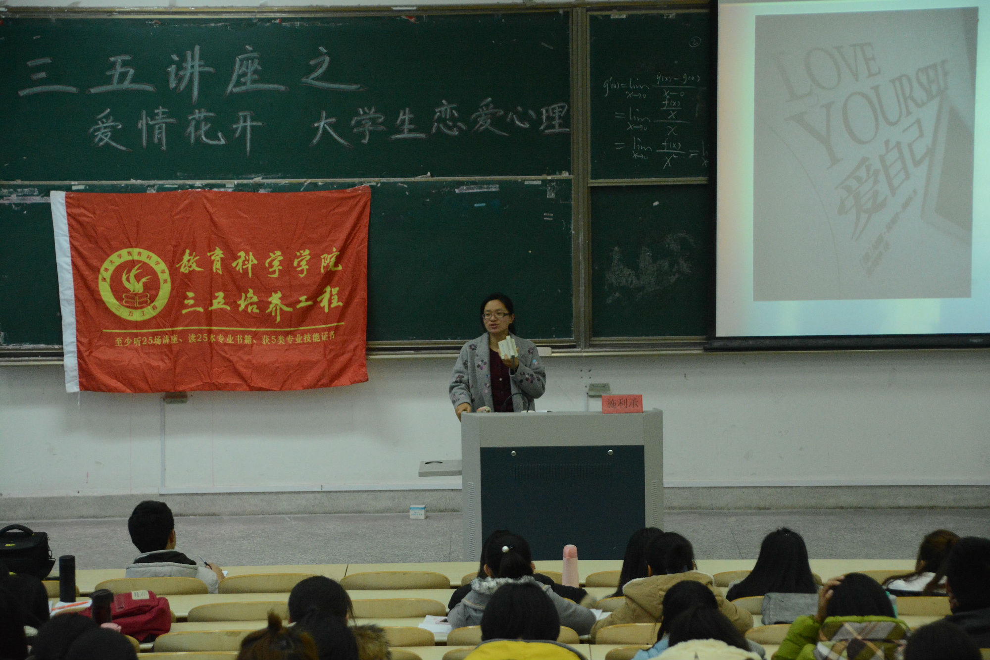 12月7日,由成人电影 教育科学学院主办,心理学博士施利承老师主讲的“爱情花开,恋爱心理漫谈”主题三五讲座在主校区9号楼201教室如期举行。共有师生120余人参加了此次讲座。