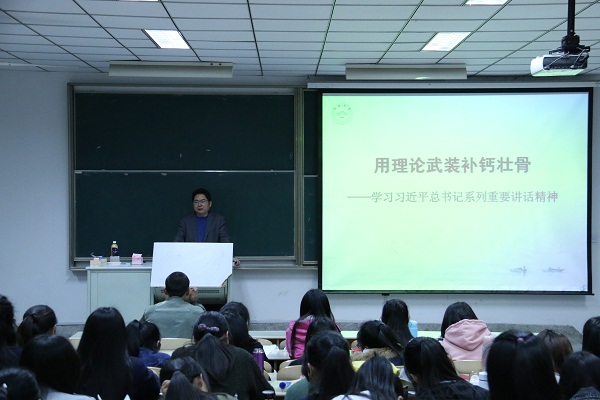 本次培训由院党总支副书记副院长徐红波老师主讲,主题是“用理论武装补钙壮骨——学习习近平总书记系列讲话”。徐书记带领入党积极分子共同深入学习习近平总书记治国理政的战略思想,包括一个梦想,两个目标,三个倡导,四个全面,五大发展理念等相关内容,旁征博引,深入浅出,使同学们深刻理解了共产党的时代使命与责任,明确了每一位入党积极分子在以后的学习和生活中重视学习,关心时事,增强创新精神与实践能力,用理论武器武装自己,以实际行动践行社会主义核心价值观,脚踏实地一步步向党组织靠拢。