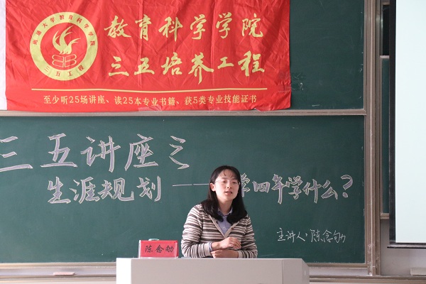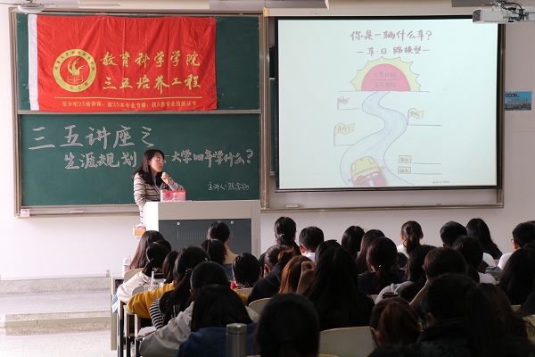 10月24日13:30,成人电影 在主校区8号教学楼309教室成功举办了以“生涯规划——大学四年学什么”为主题的三五讲座,本次讲座由陈念劬老师担任主讲嘉宾,来自教科院的160余名本科生参与了此次讲座。