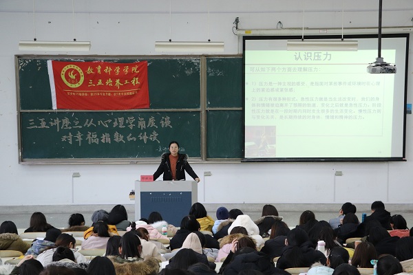 12月12日13:30,成人电影 于9号教学楼202教室成功举办了以“从心理学角度谈对幸福指数的解读”为主题的三五讲座。本次讲座由校就业中心的邱佩钰老师主讲,教科院280余名学生到场参加。