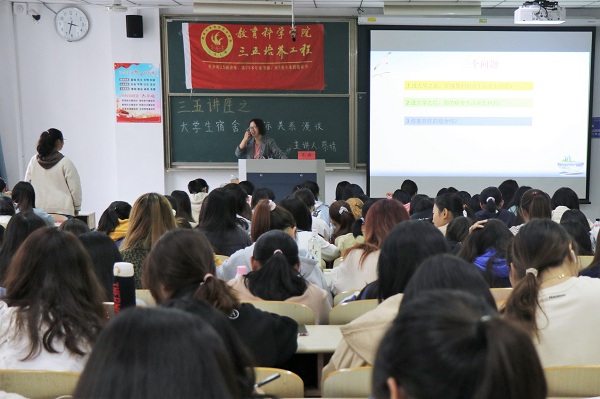 10月21日,成人电影 于八号教学楼203教室举办以“大学生宿舍人际关系漫谈”为主题的三五讲座。此次讲座由蔡婧老师主讲。教科院160余名学生到场聆听讲座。