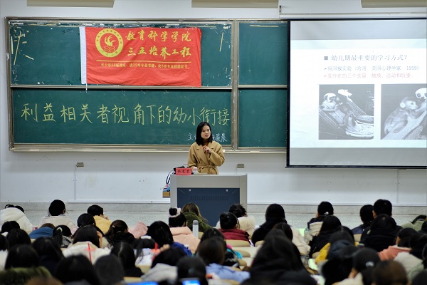 12月3日下午,成人电影 在9号教学楼302教室成功举办了以“利益相关者视角下的幼小衔接”为主题的三五讲座,此次讲座的主讲老师是杨晨晨老师,来自教科院的260余名学生参加了本次讲座。
