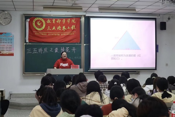 2022年11月8日,在教学楼7号楼201举办了三五讲座之爱情花开。讲座由杨岚岚老师主讲,成人电影 2022级应用心理专业所有学生参加。杨岚岚老师带领同学们深入了解爱情,引导同学们逐渐树立正确的爱情观。她通过不同年代的爱情的样子引出了讲座的主题,从爱情的实质、谈恋爱的好处、恋爱的动机、大学生恋爱现象、性态度的角度对爱情进行解析。