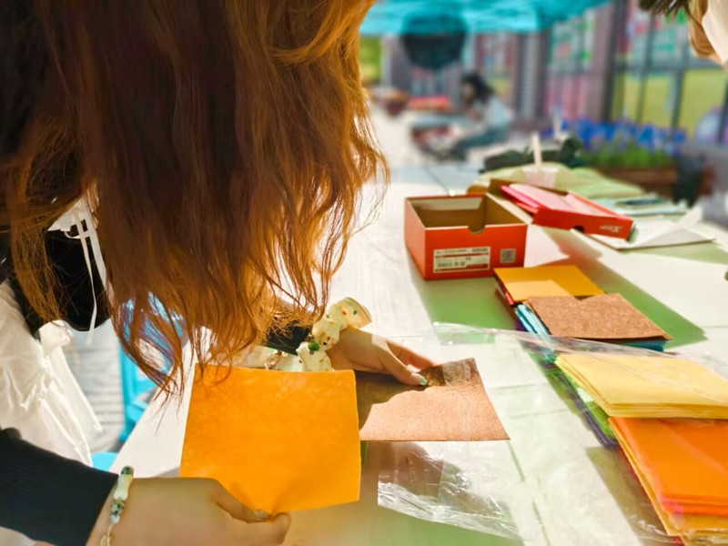 活动内容精彩纷呈,首先是不织布体验,活动当日恰逢“520”,同学们不仅领取材料进行了自由创作,还在活动现场挑选了喜欢的颜色,剪出一个爱心作为纪念。在制作褶皱花活动中,同学们亲手制作花朵,并在彩纸上写下对自己、亲人和朋友的祝福。情绪便利贴活动则鼓励同学们分享内心的情绪,将积极或消极情绪写在便利贴上并放入情绪箱。最后,线上照片墙活动邀请同学们上传能够给予他们力量和温暖的照片,这些照片将被组合起来,与教科院或成人电影 的图片叠底,共同制作并发布一张充满回忆与温情的大合照。